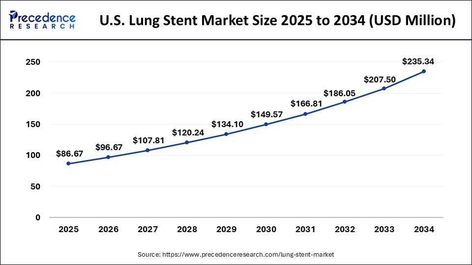 According to Precedence Research, the global lung stent market size will grow from USD 235.84 million in 2025 to nearly USD 629.72 million by 2034, with an expected CAGR of 11.53% from 2025 to 2034.